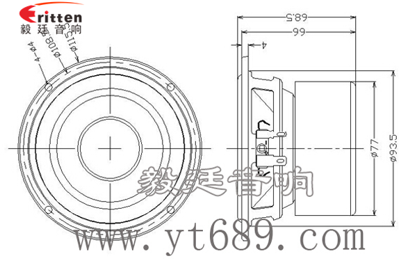 4.5寸圓形黑色烤漆鐵盆架中低音喇叭,采用了高性能雙磁鐵氧體,具有極高的磁場度,讓喇叭在最大功率運行環境下低失真等風格,防磁罩更好的保護了揚聲器的磁場不外漏。