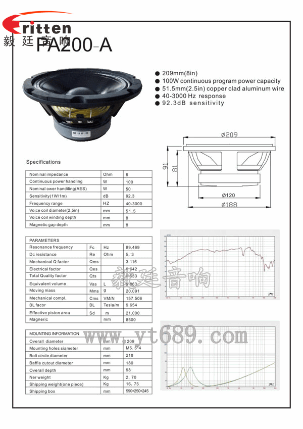 209mm圓型鋁盆架外磁重低音喇叭,采用的是高性能鐵氧體,磁性強,動力足,瞬間響應快;