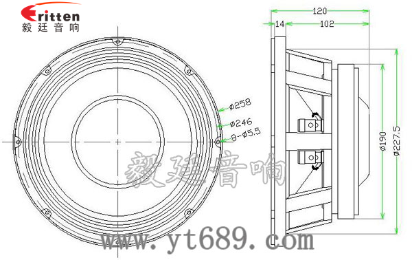 10寸圓形鑄鋁盆架中低音喇叭,采用了高性能鐵氧體磁鋼,強(qiáng)大的磁性給喇叭提供了充足的動(dòng)力。