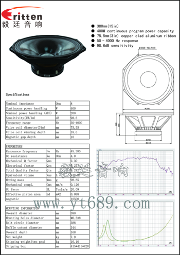 15寸異型鋁盆架外磁重低音喇叭,采用的是盆架以精鋼沖壓成型,涂覆黑色防氧化漆,設計精簡牢固穩(wěn)重實用。