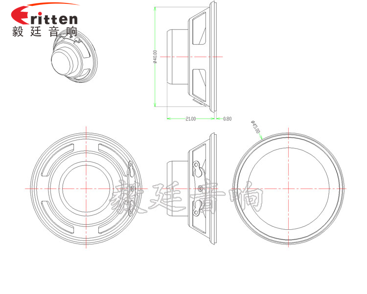 45mm鐵盆架橡膠邊紙盆紅色防水鍋底帽內(nèi)磁雙磁全頻喇叭,它用的是方便安裝、方便操作、牢固性好的帶U鐵一體式圓形鐵盆;