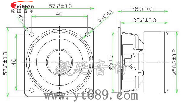 此款優異用于57*57mm4Ω5w--喇叭廠家故事機,額定功率為5w,最大功率為10w,便于安裝,音質震撼強,值得選購: