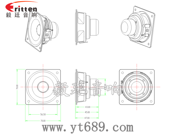 70mm方型鐵盆架內磁全頻喇叭,采用的是稀土高強磁,功率大,性能穩定,音色飽滿、圓潤;
