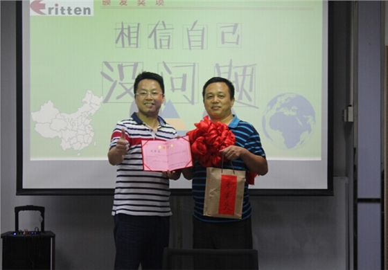 男兒當(dāng)自強(qiáng),責(zé)任勇?lián)?dāng)。作為毅廷公司的中流砥柱,奮勇?tīng)?zhēng)先,開(kāi)拓創(chuàng)新,他的名字會(huì)銘刻在毅廷的功勞薄上!接下來(lái)為大家頒發(fā)的是毅廷7月月樶高銷(xiāo)售額獎(jiǎng)的獲得者,他以57萬(wàn)的銷(xiāo)售額獲得7月月樶高銷(xiāo)售額獎(jiǎng),他就是帥氣陽(yáng)光的外貿(mào)部銷(xiāo)售員朱劍友
