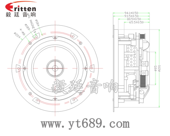 2.5寸13芯5瓦外磁雙磁全頻喇叭