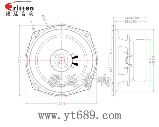 105mm30W雙磁重低音HIFI音箱喇叭