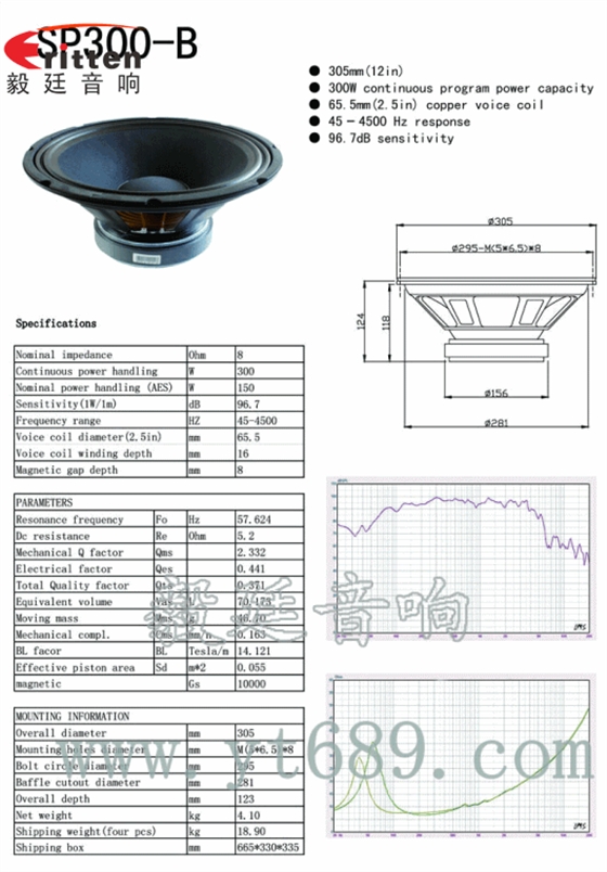 ★靈敏度(SPL):96dB(1M/1W)