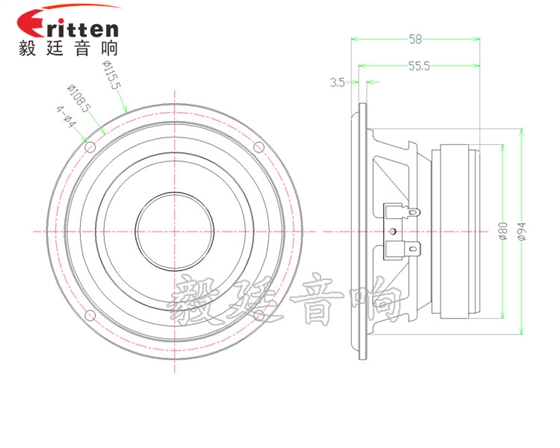 4寸20芯10瓦全頻多媒體音箱喇叭