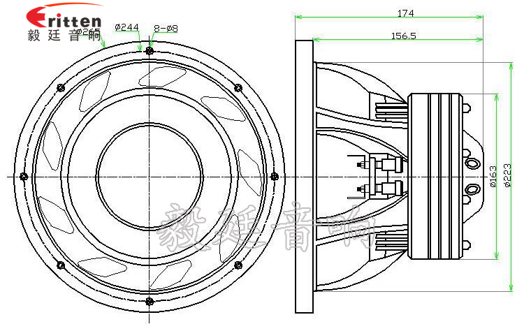 10寸圓形重低音喇叭,高純度的鋁盆架,采用鑄鋁盆架,承載著大型磁路和振動系統,高性能的鐵氧體,磁性強,給喇叭提供了充足的動力;