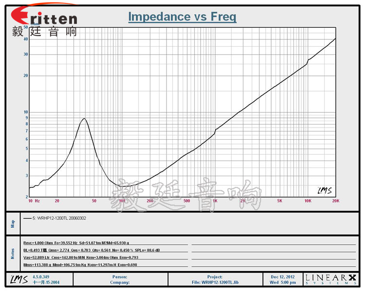★頻率范圍(freq response):39Hz~2.5KHz