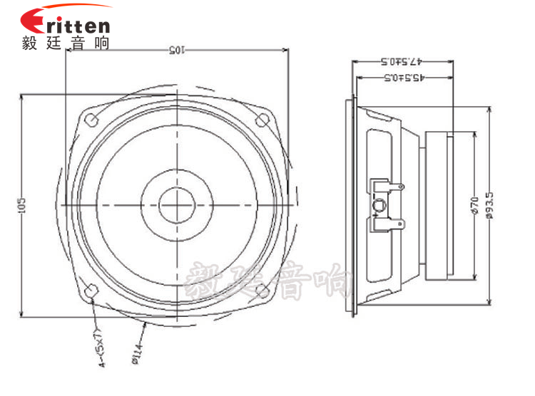 4寸蘋果形鐵盆架19芯泡邊紙盆帶高音杯鐵氧體外磁喇叭,采用的是大眾形、普通形的結(jié)構(gòu)設計,方便與各類音箱的安裝;