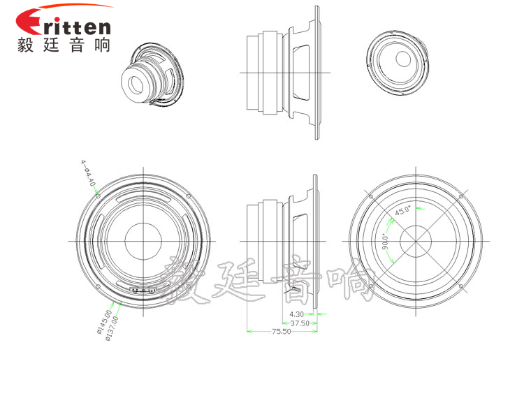 145mm圓形鐵盆架外磁雙磁全頻喇叭,采用的是高性能鐵氧體,雙磁提高靈敏度,音質(zhì)清晰、飽滿;