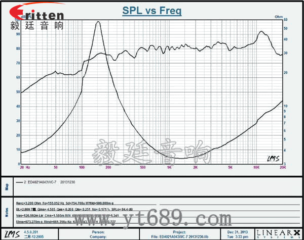 ★頻率范圍(freq response):155Hz~20KHz