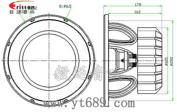 12寸圓形重低音喇叭,采用了高純度的鋁盆架,加強(qiáng)加寬壓鑄磨砂,承載著大型磁路和振動(dòng)系統(tǒng),保證了大功率工作時(shí)的穩(wěn)定性;