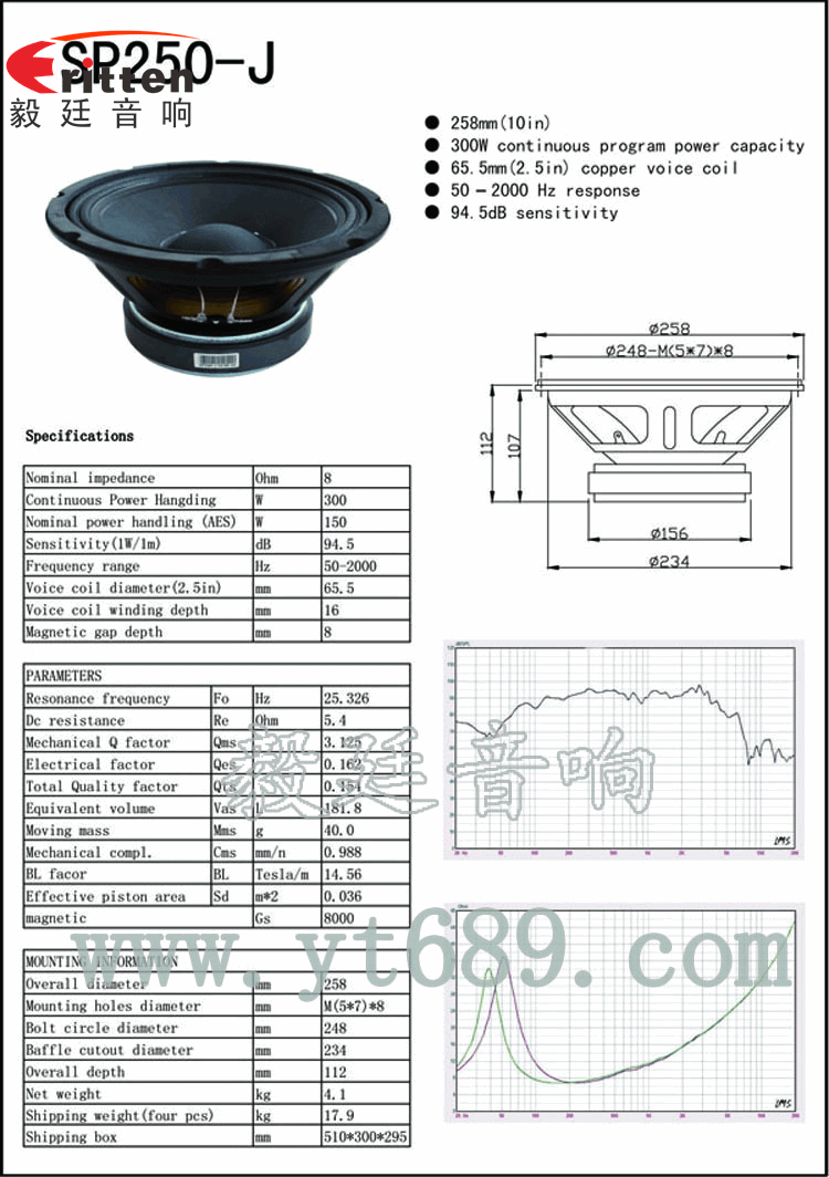 此款10寸8歐65芯重低音喇叭,最大承載功率300W,音色飽滿、具有的高清晰度、低失真等風格,優異用于專業舞臺音箱上,毅廷喇叭廠家受到廣大客戶的信賴。