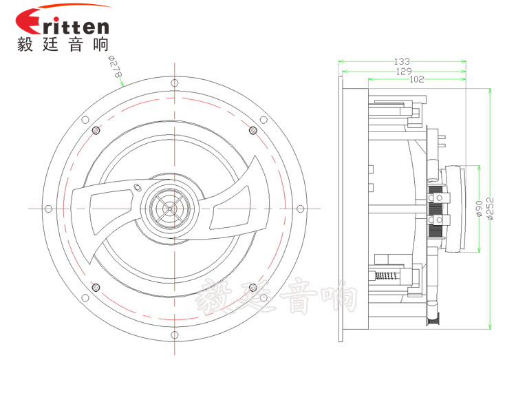 | 采用的是橡膠邊PP盆,25芯KSV音圈,帶20芯絲膜高音頭,音質完美,穿透力強,性能穩定;