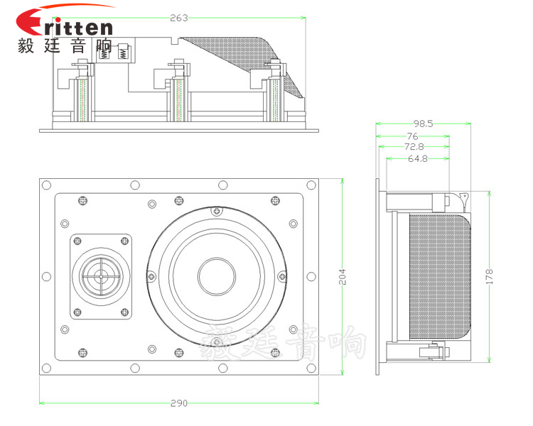| 采用的是25芯和20芯絲膜高音喇叭,增加了整個掛壁音箱喇叭的頻寬盆,使音色更加飽滿;