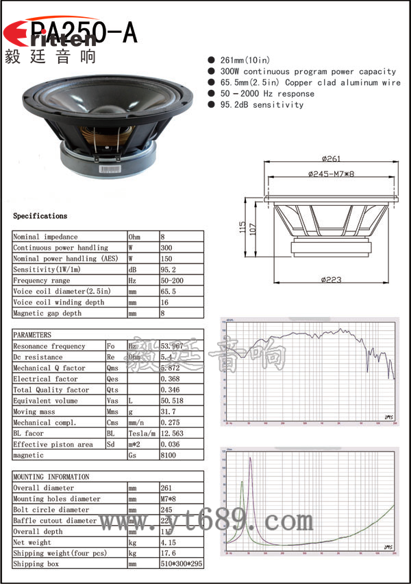 此款超級(jí)重低音揚(yáng)聲器,廣泛用于10寸重低音舞臺(tái)音箱喇叭,額定功率達(dá)到150W,防水防潮喇叭,聽(tīng)感厚實(shí),受到廣大客戶(hù)的信賴(lài)。