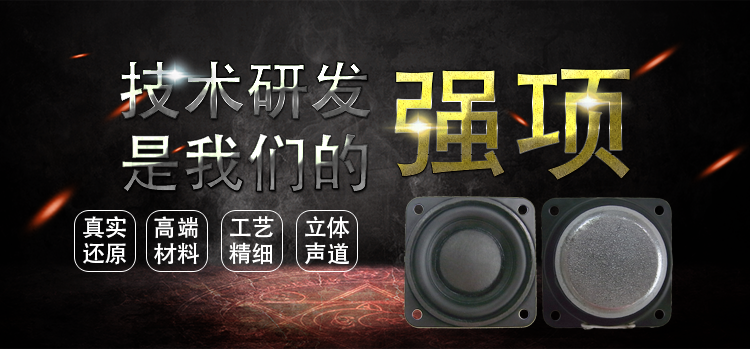45mm方形鐵盆架內磁全頻喇叭,采用稀土高強磁磁鋼,密度高,磁性強,使音色清晰、飽滿;